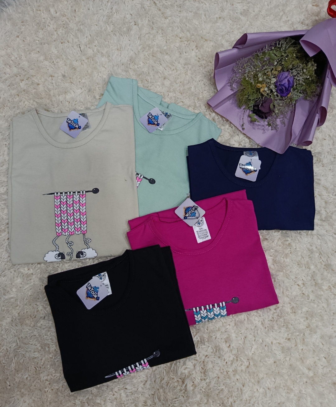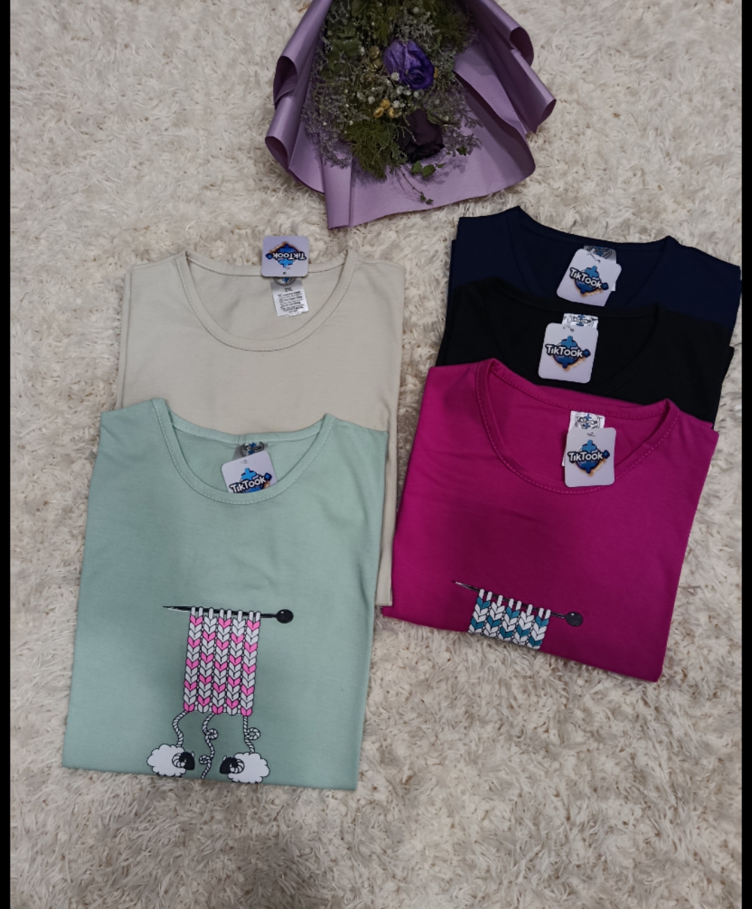 تیشرت با طرحهای متنوع (از طرح ۱ تا ۶) و رنگ لاوندر دلنشین، بهآسانی با شلوار، دامن یا حتی یک لباس بیرون ست میشود.