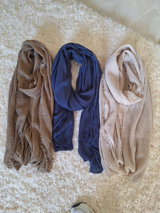 💎 شال دور مروارید زنانه با پلیسه نرم وارداتی